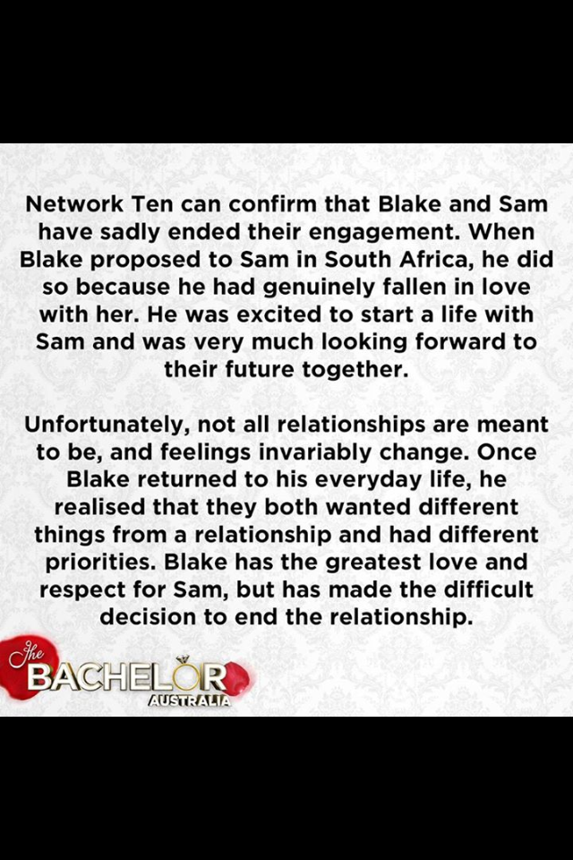 • 12 hours later, it is confirmed Sam and Blake have already split.